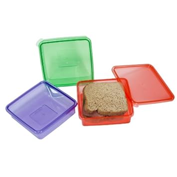 - Keep your sandwich fresh and protected in these colorful, reusable storage containers. Pack’n snack sandwich boxes will fit in lunch kits or boxes of all sizes. Bpa free, microwavable, and top rack dishwasher safe. Set of 3 in green, pink, and purple.